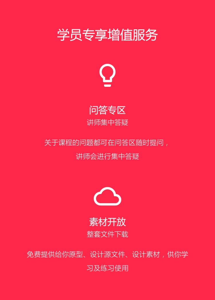 感谢你的支持。本套课的定位是真实演示一套商业级项目的设计过程,从需求开始,到结构、原型、界面、Banner、切图、标注……所以,难免会因项目需求,有一些相近的页面设计和操作存在,这个在真实项目设计中也是存在的。实战课更多的是要学习对一套项目细节处理以及整体产品设计、把控能力,而不是一个单纯的工具操作,或者对一两个单页面的设计。但你的评价也在让我在反思,到底如何授课,可以让更多同学在这种真实实战课上,既能有真实项目操作感,又不会有相似操作的错觉。嗯~~录海无涯。+1