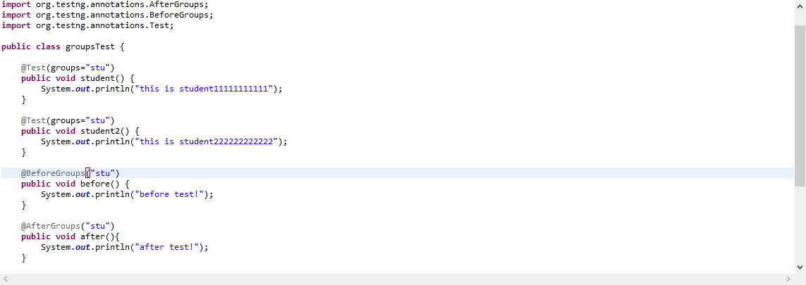 直接在java文件中执行run as -> TestNG Test, @BeforeGroups注解可以执行